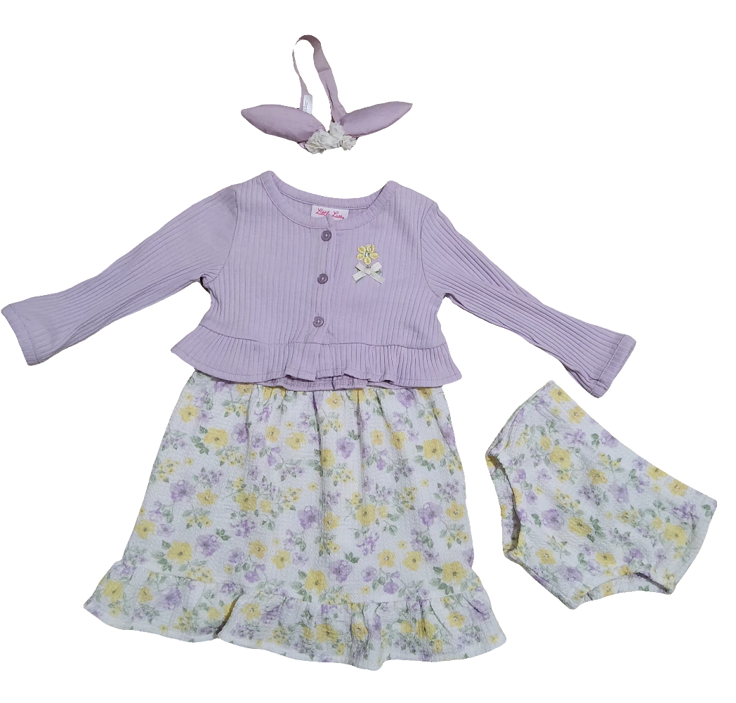 Little Lass conjunto vestido casaquinho e tiara 3 peças
